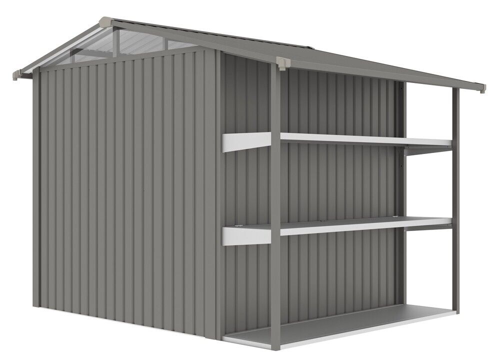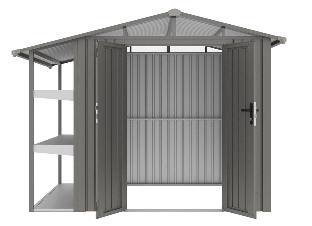Vneste do svojej záhrady poriadok a eleganciu s domčekom AMY X-B. Vďaka vysokým stenám a priestranným dverám je manipulácia s náradím a vybavením jednoduchá a pohodlná. Praktické regály a svetlé polykarbonátové okno robia z domčeka ideálne miesto na uskladnenie všetkého, čo potrebujete mať po ruke.