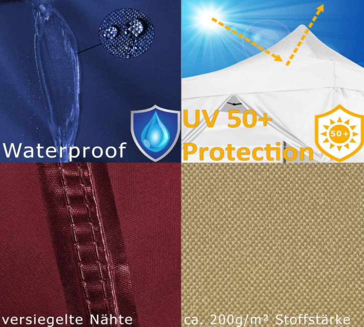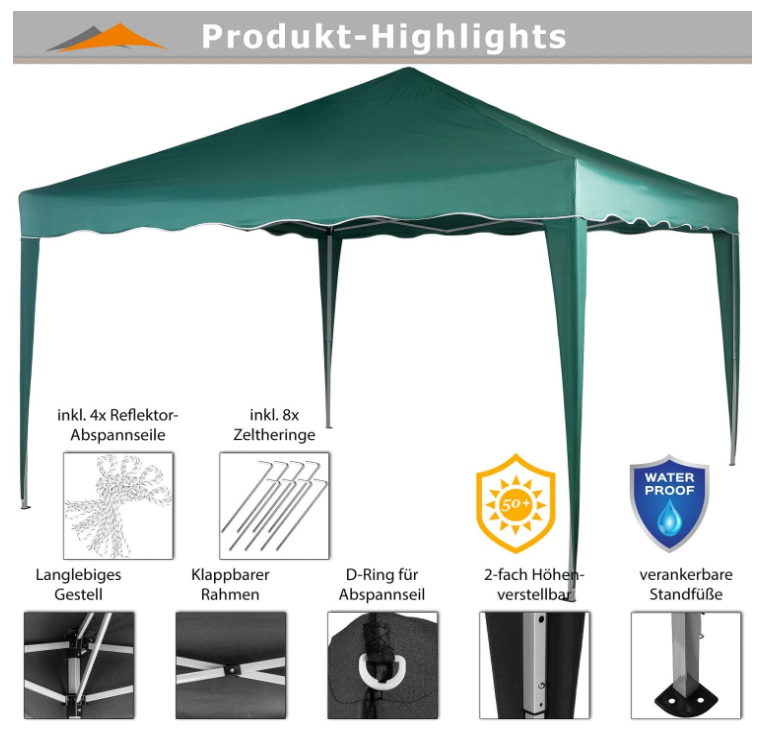 Náš skladací pavilón INSTENT „Basic“ má rozmery strechy a postaveného pavilónu 3 x 3 m a je výškovo nastaviteľný.