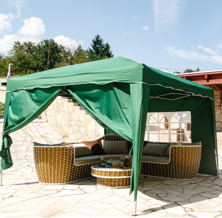Vytvorte si dokonalé miesto na letný oddych – tento skladací stan vás ochráni pred dažďom aj ostrým slnkom. Elegantný tmavozelený dizajn sa hodí do každej záhrady a poskytne príjemný tieň aj súkromie pri každej príležitosti.