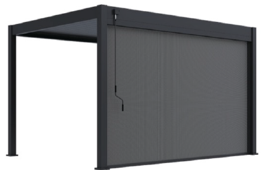 Zobraziť podrobnejší popisPraktická zástena s textilenom, chráni pred vetrom, kompatibilná s bioklimatickými pergolami.