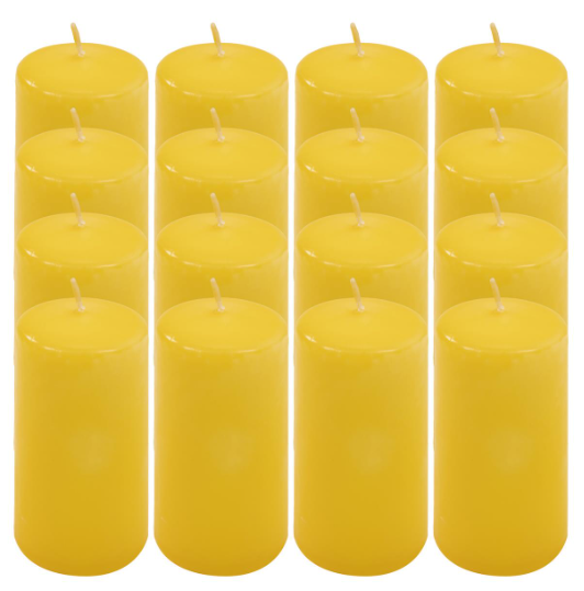 Žltá parafínová sviečka 10 cm, 20 hodín, 16 kusov